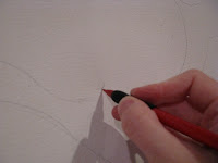 I have decided not to bore people with the canvas stretching. After I stretched the canvas and coated it with gesso, I sketch my tree onto the canvas lightly with a #2 pencil.